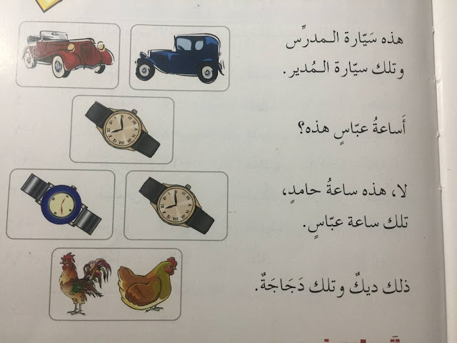 لاَ, هَذِهِ سَاعَةُ حَامِدٍ, تِلْكَ سَاعَةُ عَبَّاسٍ = no, this is Hamid's watch, that is Abbas' watch.